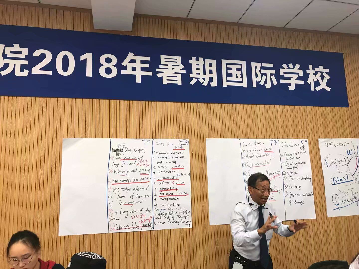 经过教务处及有关各方紧张而有序的准备工作,我校每年一次的暑期国际学校如期开始了第一门课程:《国际商务沟通》(7月3号----7月6号)。此门课程由授课经验丰富的Stephen Ng教授悉心讲授。课程内容包含四个模块:1) Business Management & Organization (2 July,2018) ,2) leadership in Business (3 July,2018) 3)Communication and Measurement(4 July,2018), 4) Teamwork and Collaboration (5 July,2018)。课程中,同学们满怀热情,积极活跃,他们相互组队,或积极讨论,或课堂展示,或友情客串,或静心阅读,或认真写作,或相互挑战,提出自己的观点。全英文的授课环境中,同学们润物无声地完善着自我的认知,实现着知识和心灵的成长,展示着对知识的渴求和对课程的喜爱。